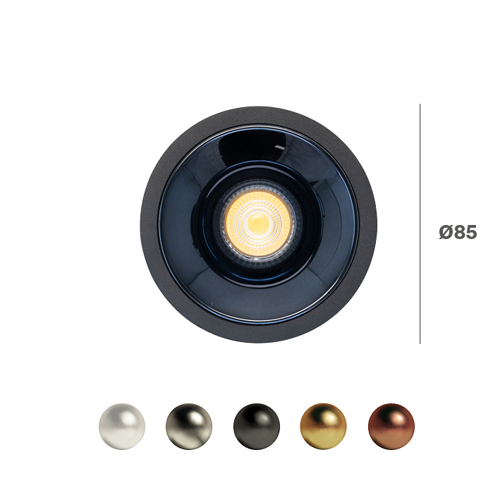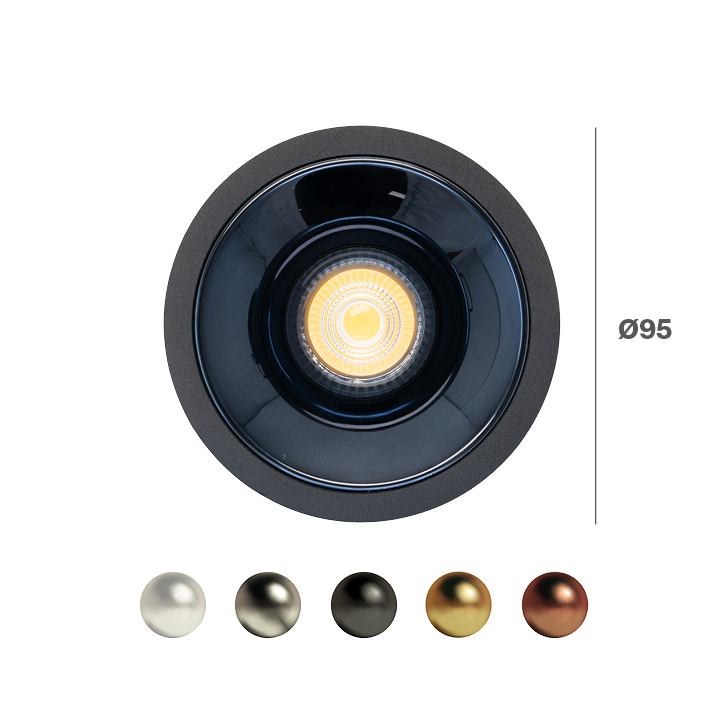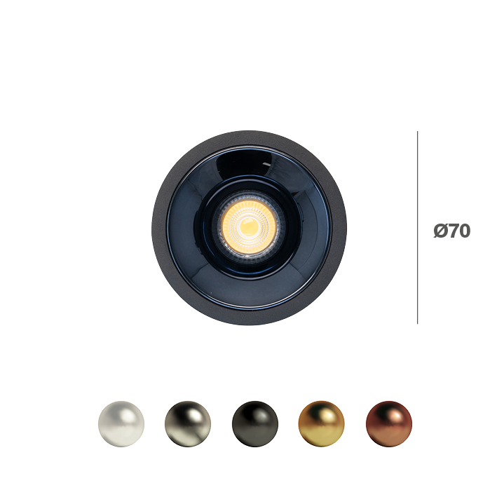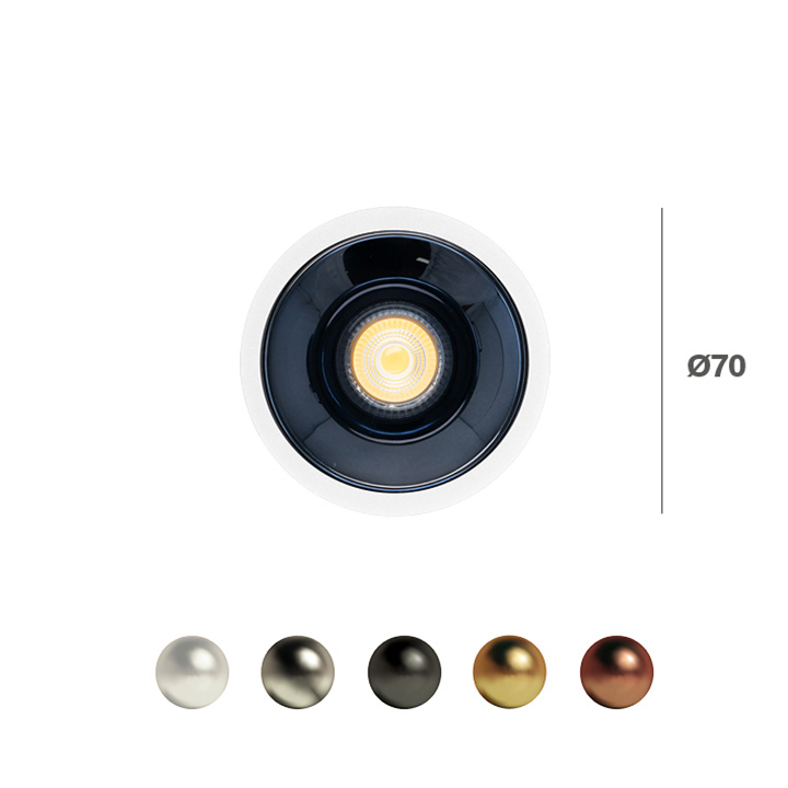 CELSI ROUND COB LUXY: INCASSO TONDO COB NERO 7W, PARABOLE OPACHE