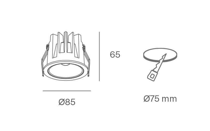Apparecchio ad incasso per interni, a scomparsa per controsoffitti in gesso, telaio in alluminio. LED COB ad alto rendimento. Disponibile a 7W, 12W, 18W e varie colorazioni , CRI 90, lente 36° - Dimensioni per 7W: diam. 70xh55mm - Dimensioni per 12W: diam. 85xh65mm - Dimensioni per 18W: 90xh80mm. Colorazioni interne disponibili: Bianco, Cromo, Nero, Oro, Rame