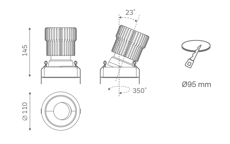 | DW500-40C25 | ZENO DOWNLIGHT ORIENTABILI 40W 110X145MM 3000K 25° |