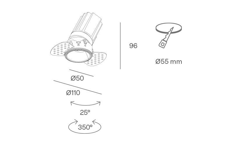 VALIER DOWNL.10W 3000K TONDO OR.TRIMLESS 50° PAR. BIANCO