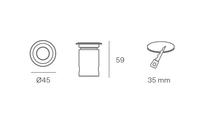 ORSEOLO 45 INCASSO 2W 15° 24Vdc 4000K GHIERA INOX 316L GRIGIO