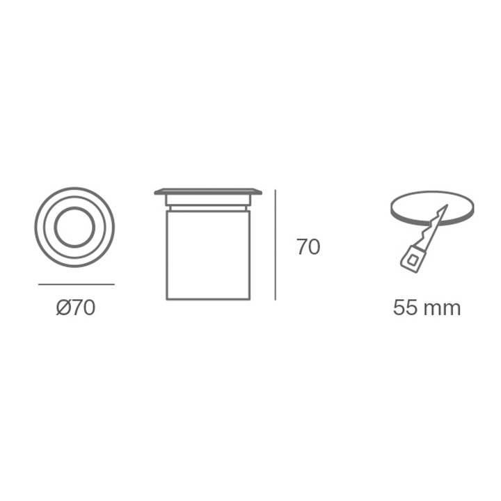 ORSEOLO 70 INCASSO 6W 120° 24Vdc 3000K GHIERA INOX 316L GRIGIO