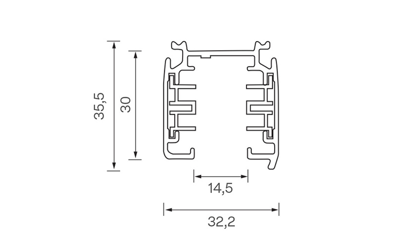 Binario appoggio a 3 circuiti 3000x32x35,5mm, bianco