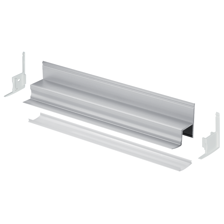 Profili in alluminio estruso anodizzato per l’installazione solo ad incasso su cartongesso a scomparsa per creare bordi di luce indiretta a fine cartongesso.