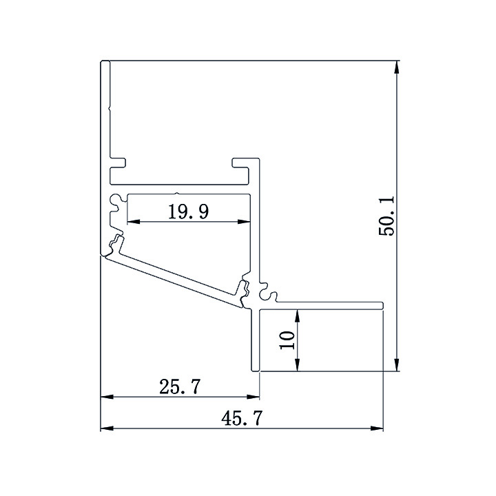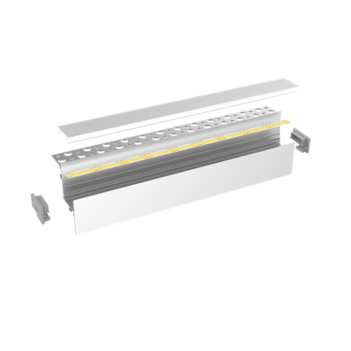 Profili in alluminio estruso anodizzato per l’installazione solo ad incasso su cartongesso a scomparsa per creare bordi di luce indiretta a fine cartongesso.